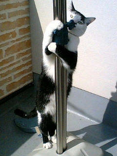 棒に絡まるちょびさん。こういうの、洋画で見たことありますね。お姉さんが棒に絡まって踊るやつ。踊って、ちょびさん!(笑)